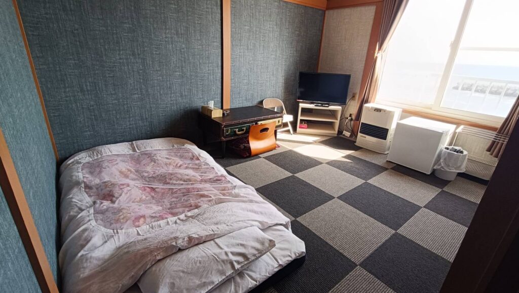 外から気持ち良い風の入る和室です。窓側には海が見え、波の音も安らぎます。